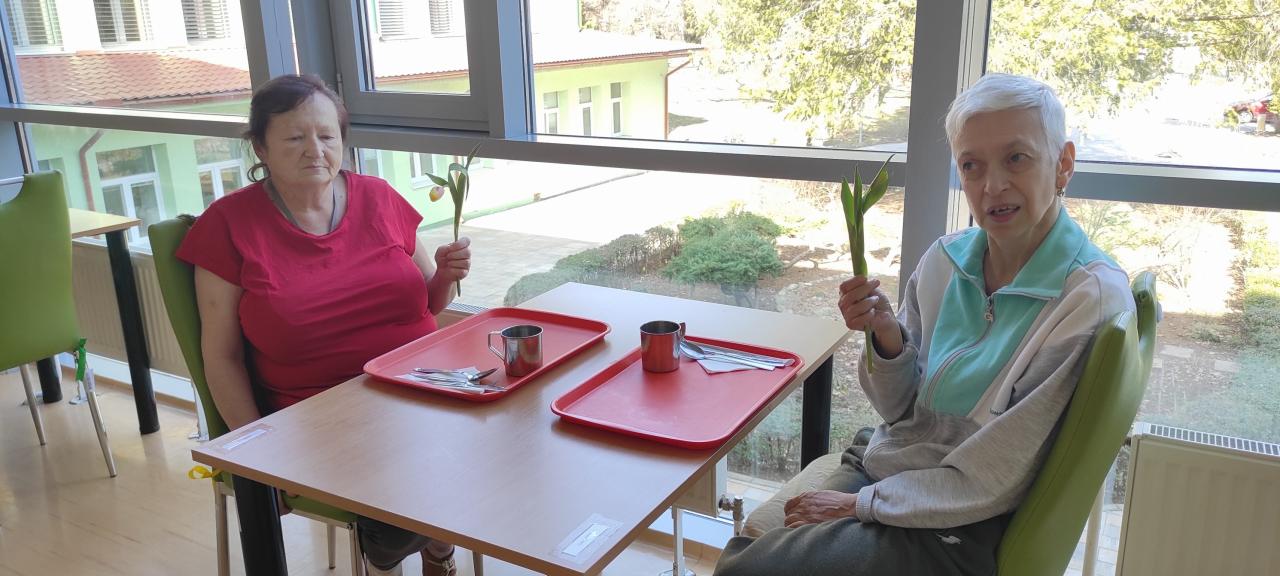 Ani tento sme v našom domove nezabudli začiatkom Marca na sviatok všetkých žien. V jedálni naše malé posedenie zahájila krásnou pesničkou jedna z našich klientiek. Aj takéto malé stretnutie vyčarilo na tvárach našich žien krásne úsmevy.